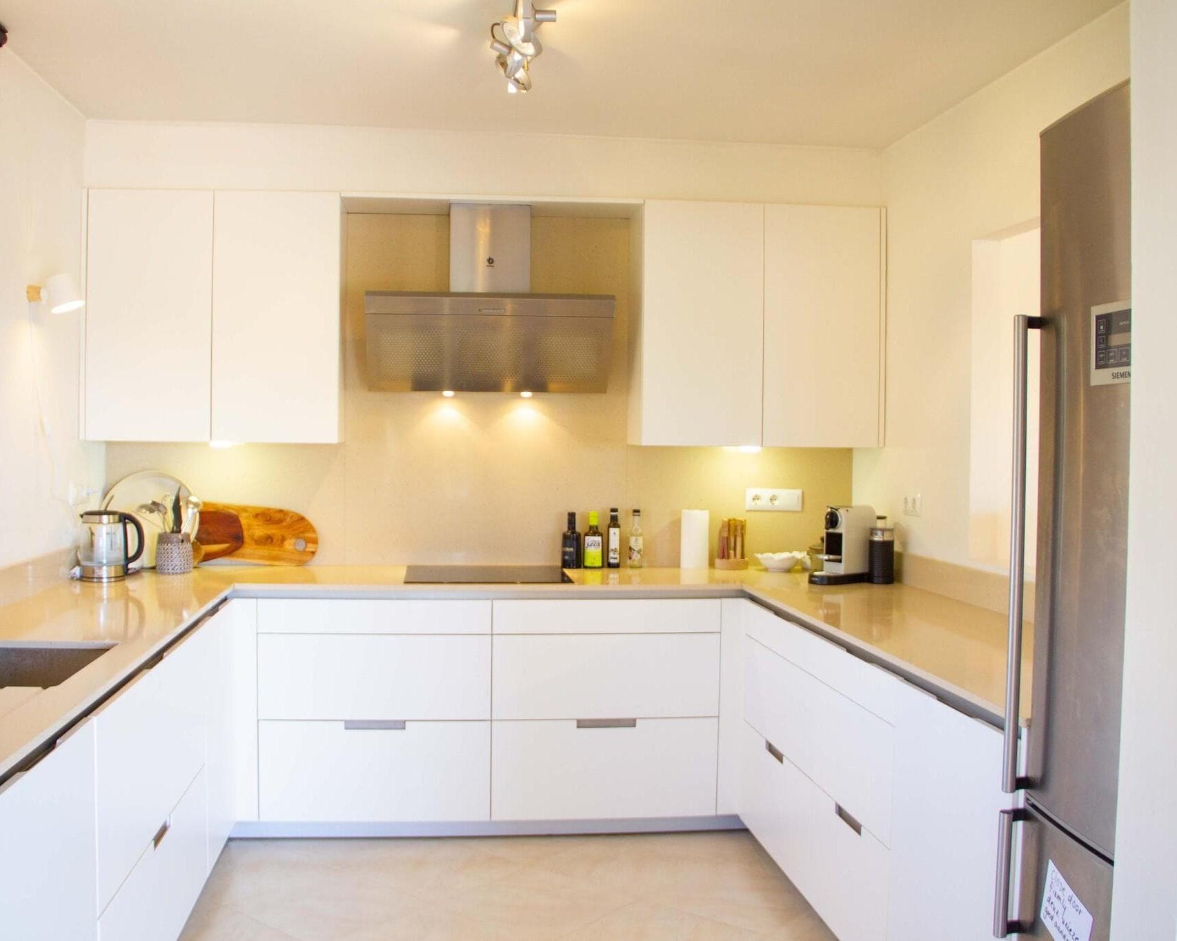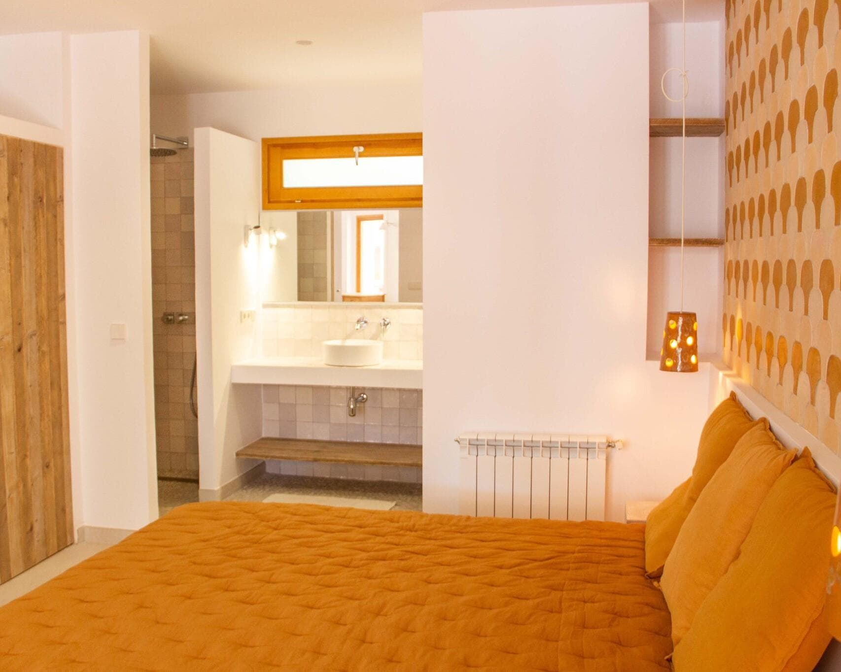 The ground floor: From the naja you enter the kitchen of the ground floor. The kitchen is equipped with a 3-burner hob, fridge-freezer and Nespresso machine. There is a 4-person dining area. Bedroom 4: has a double bed (180x200) and ensuite bathroom with shower, sink and toilet. Bedroom 5: has a double bed (160x200) and is equipped with shower, sink and toilet. The bedrooms are air-conditioned.