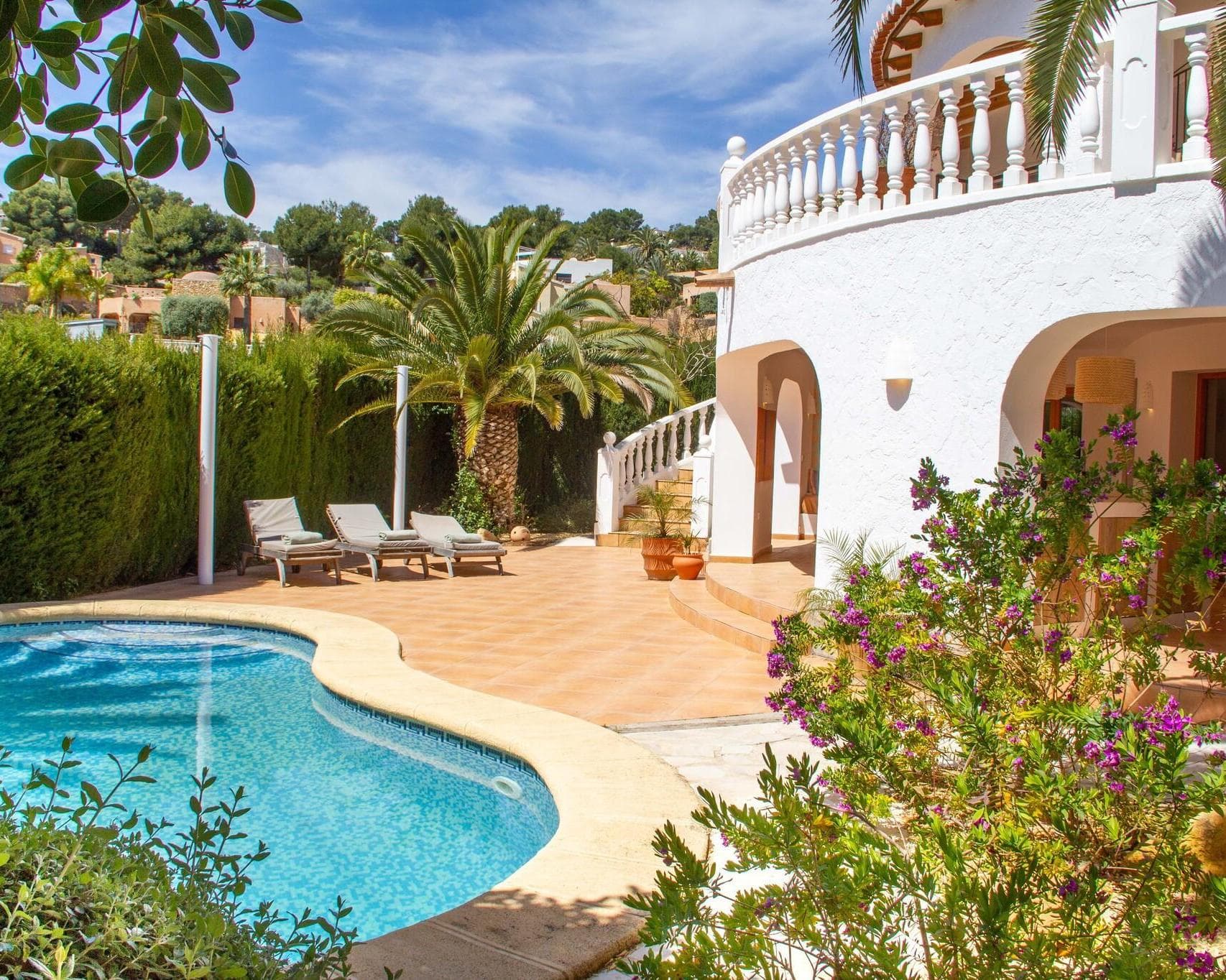 This spacious villa for 8 people with private pool is located a short distance from the beautiful bay of El Portet. Casa los Moros, located in the greenery, has a fresh and modern interior and has a beautiful view of the surroundings from the large balcony. The naja with large dining table invites you to enjoy your breakfast, lunch or dinner together for hours, interspersed with a dip in the adjacent swimming pool. With family or friends on holiday, this is a very suitable holiday home for a successful stay on the Costa Blanca !